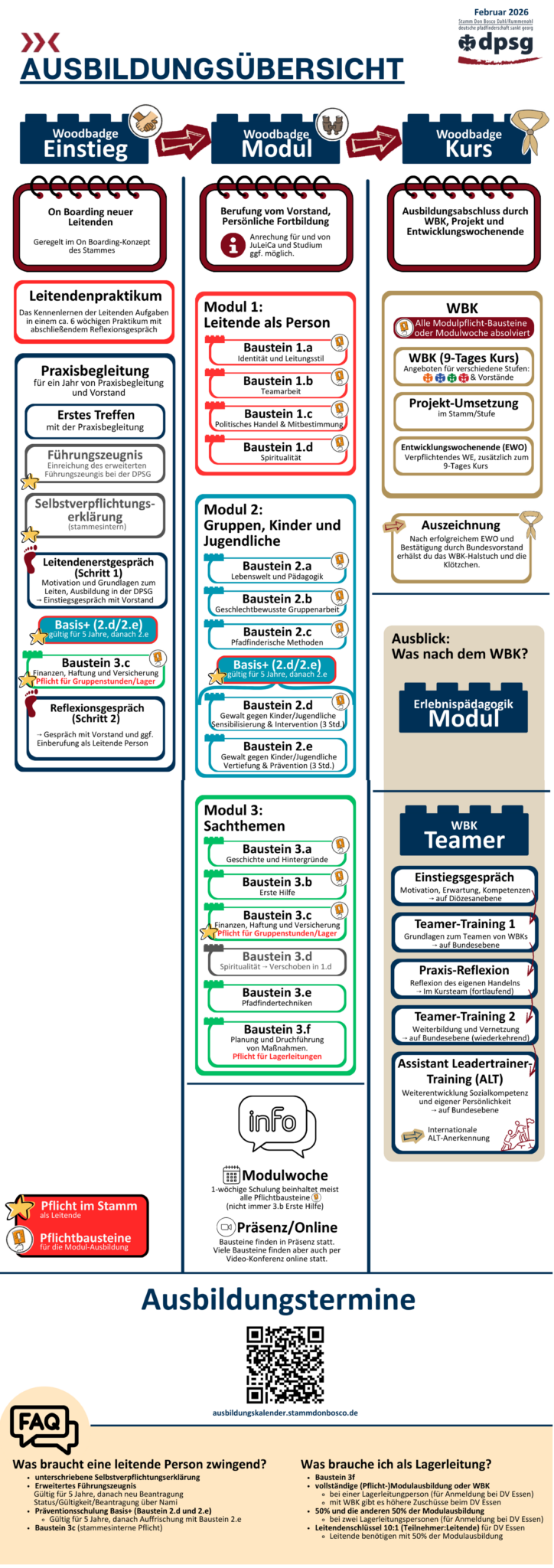 Zusätzlich lohnt es sich für Modulwochen, WBKs, Modul/Teamer-Training und ALT auf dem offiziellen Ausbildungskalender der DPSG zu schauen.