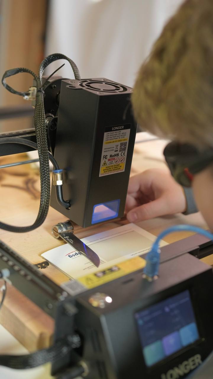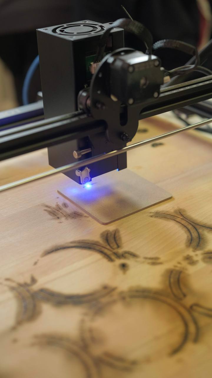 Mit einem Laptop konnten dort individuelle Designs erstellt werden, die dann mit hilfe eines Lasergravieres auf eine hölzernde Oberfläche gebracht werden konnten.