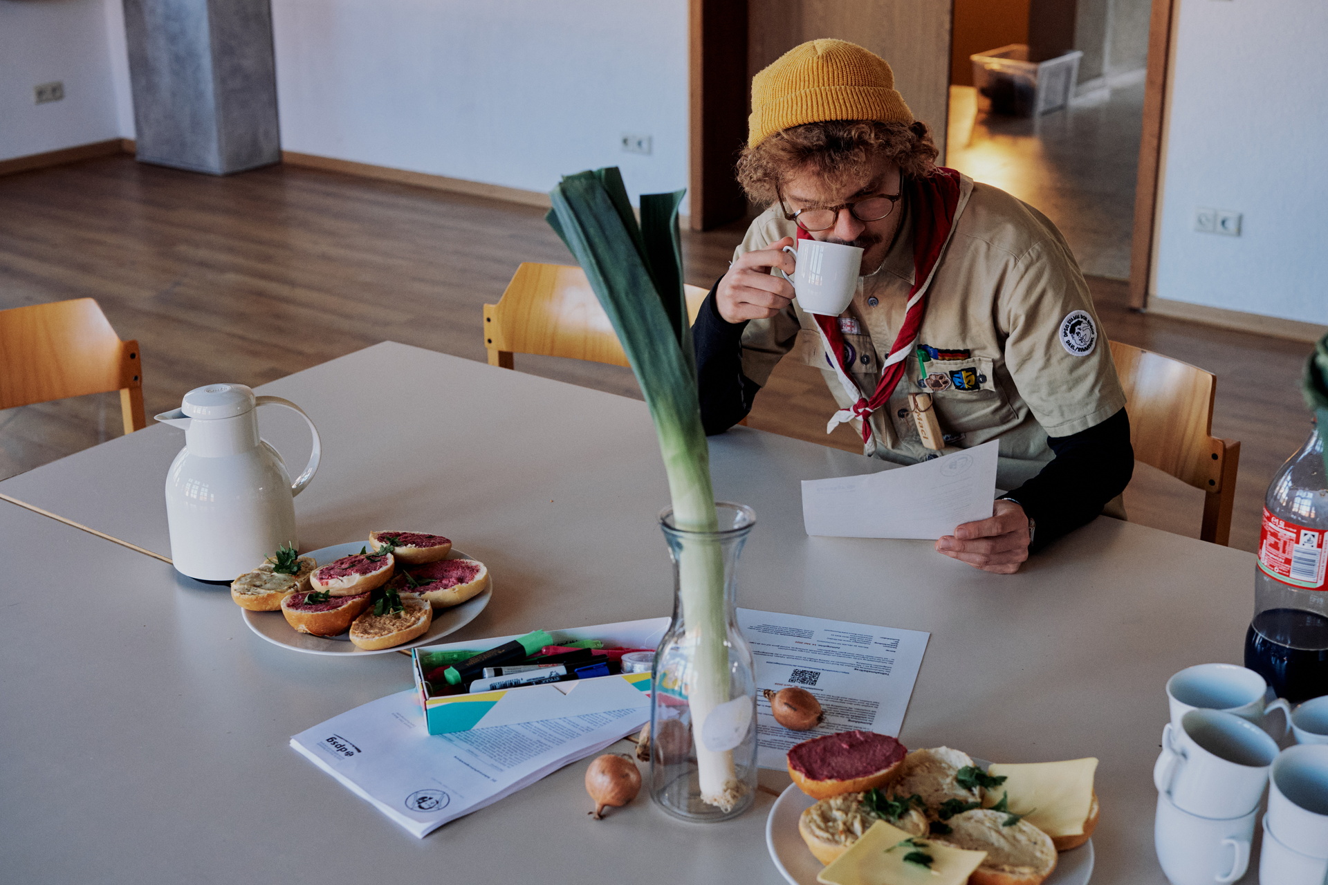 In gemütlicher Runde bei Kaffee und geschmierten Brötchen berichtete die Lagerleitung – Marcel, Simon und Elias – über den aktuellen Planungsstand des Stammeslagers 2026, das uns nach Belgien führen wird. Dabei wurden erste Ideen, organisatorische Rahmenbedingungen und der weitere Fahrplan vorgestellt.