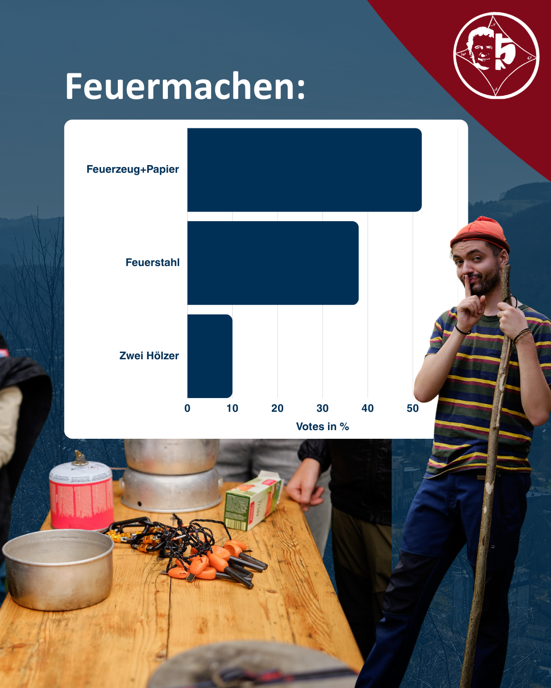 Fast ein bisschen peinlich: Die meisten machen Feuer mit Feuerzeug und Papier. Unser letzter Materialwart Simon wäre sehr traurig – warum musste er im letzten SoLa eigentlich ständig die Feuerstähle suchen?