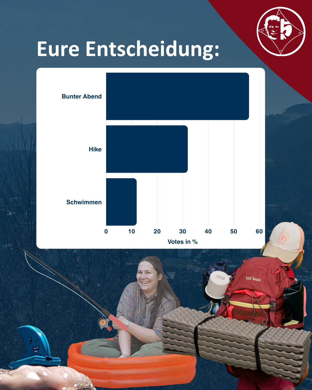 Wenn ihr euch entscheiden müsstet, wäre euch ein Bunter Abend lieber als Hiken oder Schwimmen.