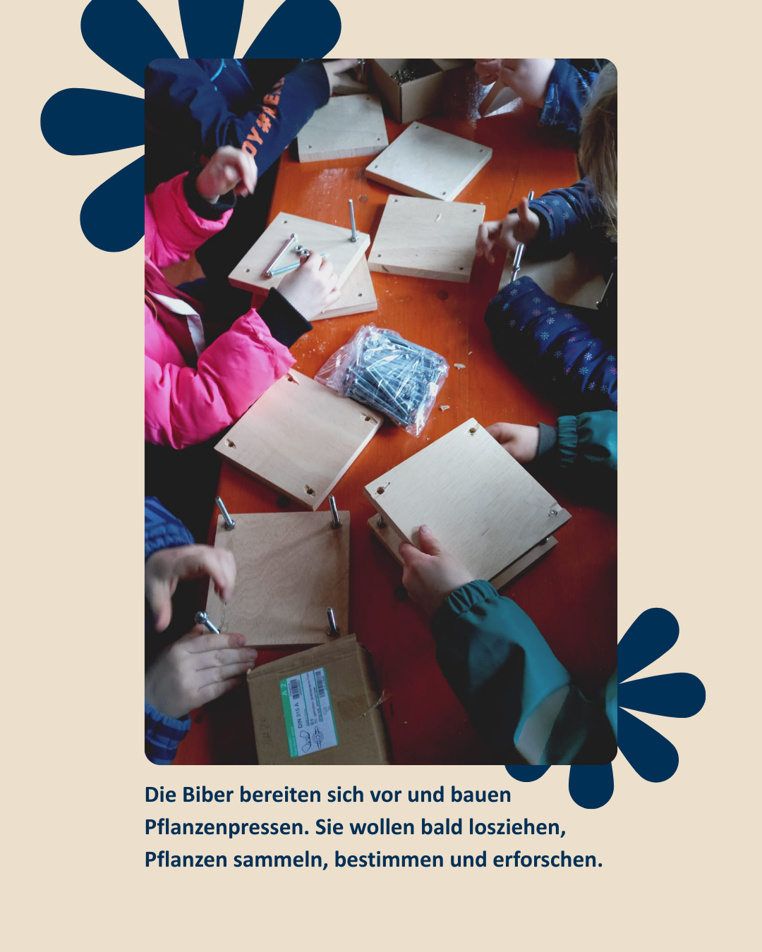 Die Vorfreude ist groß: Die Biber können es kaum erwarten, mit ihren Pflanzenpressen loszuziehen, verschiedene Pflanzen zu sammeln und mehr über die Natur zu lernen.